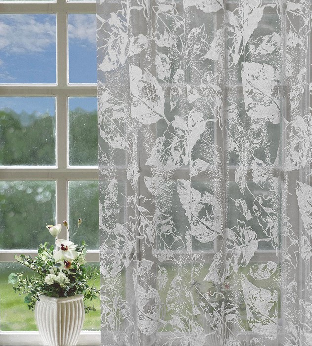 Совместные покупки Магнитогорск Товары для дома и дачи Шторы — 628085 DL, СЕРЫЕ ЛИСТЬЯ, высота 300 см, МЕТРАЖ, с серебристым блеском