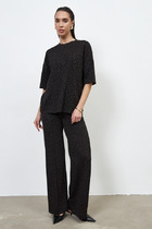 Платье полуприлегающего силуэта из эластичного полотна с жаккардовым узором. Вырез горловины оформлен воротником-стойкой. Рукав втачной.