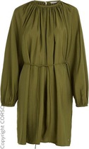 Платье отрезное по линии талии из эластичного полотна. Изделие свободное в верхней части и полуприлегающее в области талии и бёдер. Глубокий V-образный вырез горловины плавно переходит в запах, фиксируется притачным поясом. Рукав оригинального кроя в стиле кимоно. В таблице размеров представлены параметры человека, а не изделия.