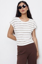 Джемпер свободного силуэта из эластичного полотна. На детали полочки цельнокроеные длинные завязки. Вырез глубокий, V-образный. Втачной рукав в спущенную пройму. Длина джемпера до линии талии.
