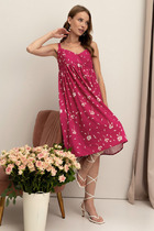 Эффектное платье прямого силуэта, чуть расширенное книзу из вискозной ткани с крэш-эффектом. Рукав оригинального кроя, низ рукава присборен на резинку. По переду и спинке изделия выполнена V-образная кокетка со сборкой в области плеча. Круглый вырез горловины, по среднему шву спинки застёжка на петлю-пуговицу. В комплекте пояс из основной ткани.