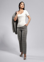 Брюки прямого силуэта, зауженные книзу из костюмной ткани. Застёжка на молнию-гульфик и пуговицу. Карманы с подкройным бочком. Притачной пояс со шлёвками.