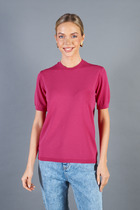 Рубашка из вискозной ткани с крэш-эффектом. Свободный силуэт с разрезами в боковых швах и застёжкой на планке. Вырез горловины обработан отложным воротником на стойке. Короткий рубашечный рукав с отворотом. На задней части изделия выполнена кокетка с небольшой складкой.