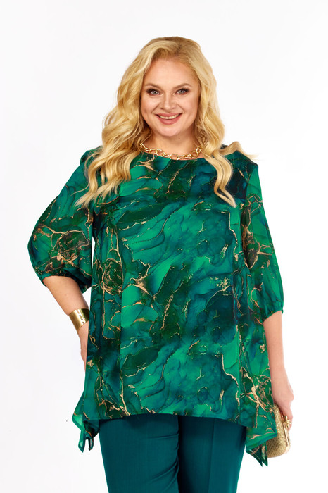 Блуза сводного кроя из принтованного шифона, что придает уникальность стилю своими красками. На полочке нагрудные вытачки, вырез горловины аккуратной округлой формы. Рукав втачной, свободный, низ присборен.