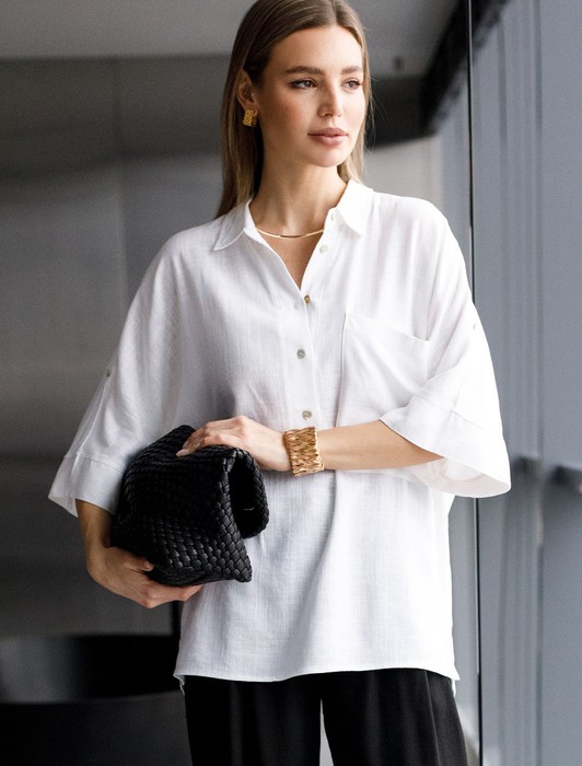 Состав: 70%Вис 30%ЛенБлузка выполнена изо льна с вискозой. Модель с цельнокроеным рукавом с застежкой на пату дополнена сольным карманом и застежкой на пуговицы из натурального перламутра. Сочетается в костюме с брюками D24.222 и шортами D28.052. Ткань изящно струится, почти не мнется и сохраняет форму в течении долгого времени, обладает высокой воздухопроницаемостью, обеспечивая комфорт даже в самое жаркое время года.