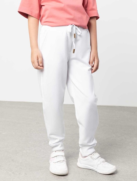 Состав: 100%ХлопокБелые джоггеры сшили из мягкого хлопкового трикотажа. Премиальный футер из 100% хлопка позволяет воздуху циркулировать и не раздражает кожу, а свободный крой модели не сковывает движения. За удобную посадку на талии отвечает широкий эластичный пояс с регулируемым шнурком. Модель дополнена высококачественной фурнитурой золотистого цвета. Идеально в костюме с худи F49.405