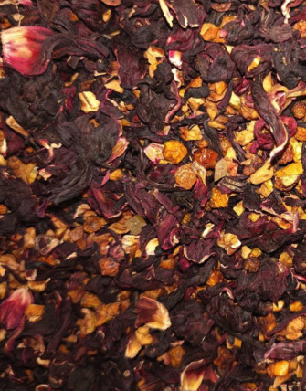Каркадэ, кусочки яблок, цукаты манго и ананаса, аромамасла