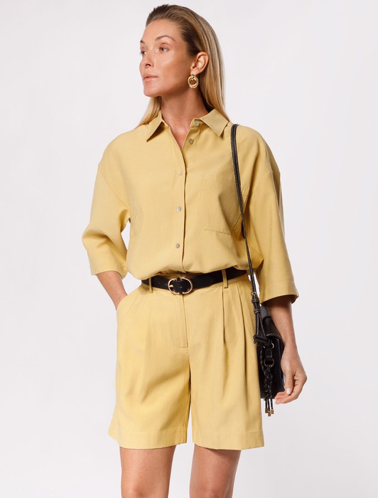 Состав: 70%Лиоцелл (Вис) 30%ПЭШорты выполнены из плотного лиоцела. Добавление синтетических волокон в составе изделия предотвращает сминаемость. Эластичный пояс на резинке фиксирует изделие не сковывая движений. Есть дополнительные шлевки для ремня. Свободная модель дополнена боковыми карманами и металлическим логотипом бренда. Для создания завершенного образа сочетайте в костюме с топом D23.058, блузкой D28.054, D29.238, D29.239 и D29.240