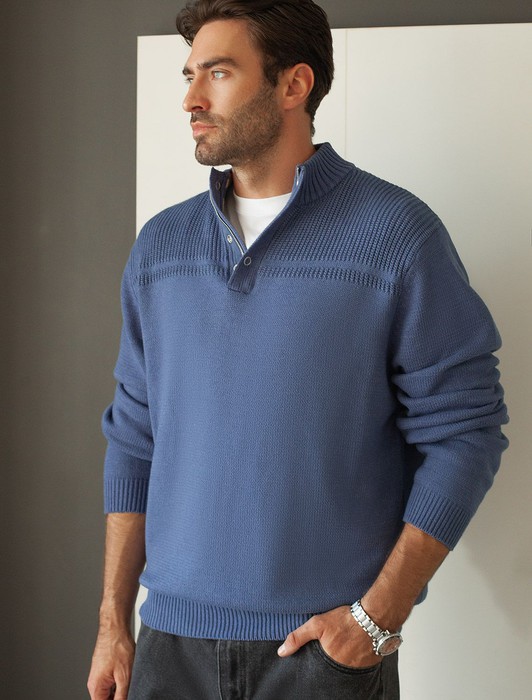 Состав: 60%Хлопок 40%ПАН (акрил)Свитер фактурной вязки с застежкой на крупные кнопки выполнен из мягкой хлопковой пряжи с добавлением акрила. Модель из такого материала не препятствует циркуляции воздуха, но при этом хорошо сохраняет тепло и не колется, поэтому ее комфортно носить на голое тело. С помощью кнопок можно регулировать высоту воротника и носить свитер по-разному. Внизу изделия нашивка бренда из эко-кожи.