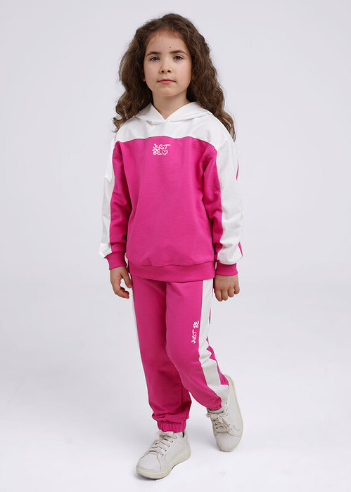 Актуальные брюки среднего объёма из футера. По бокам контрастные лампасы, спереди принт - практичный и яркий вариант на каждый день! Пояс для комфортной посадки дополнен резинкой и шнуром.