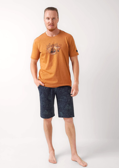 Набор для дома состоящий из футболки и шорт. Футболка из фактурного полотна ""флам"" с округлым вырезом горловины и коротким рукавом. Шорты из плотной кулирной глади в набивку на эластичном поясе с функциональными карманами и шнуром.