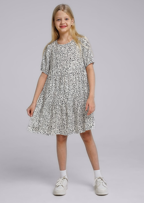 Стильное принтованное платье для твоих самых запоминающихся образов! Ярусы и пышный рукав - создают легкий и красивый силуэт. Невесомый штапель не требует особого ухода и позволяет коже дышать. Сочетай платье с кедами или балетками.