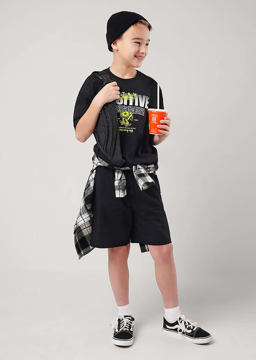 Шорты средней длины, комфортная посадка, регулировка по талии внутренним кипером, удобные карманы, стильная нашивка по низу. Сочетай в комплекте с футболками и лонгсливами из новой коллекции.