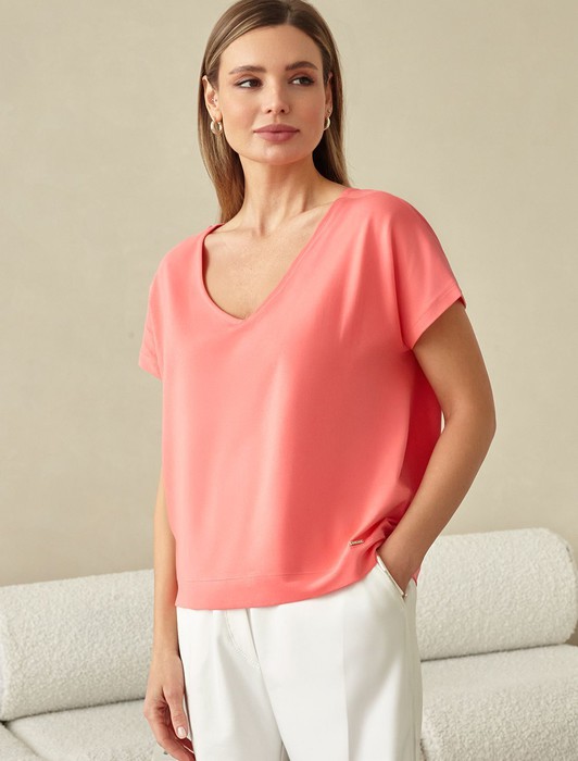 Совместные покупки Магнитогорск Женская одежда Костюмы, комплекты — АКЦИЯ Футболка с V-вырезом и цельнокроеным рукавом из премиального хлопка с эла
