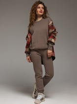 Костюм молодежный из гладкокрашенного трикотажного полотна «флис», Толстовка - полуприлегающего силуэта, с длинными втачными рукавами, воротником «стойка», карманами в рельефных швах, центральной бортовой застежкой на тесьму «молния». Брюки длинные, полуприлегающего силуэта, на притачном поясе с эластичной тесьмой внутри и карманами в боковых швах. Передние половины застрочены поцентральным линиям, низ брюк обработан подгибкой с вложением эластичной тесьмы и регулируется по ширине с помощью фиксаторов.