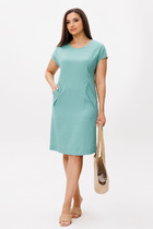 Платье с отрезной линией по талии из джинсовой ткани. Длина миди. Платье на регулируемых бретелях. Застёжка по переду на кнопки и по боку на потайную молнию. По переду клапаны на полочке и на юбке. По талии платье фиксируется съёмным регулируемым поясом на пряжке.