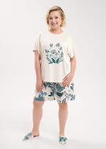 Домашний костюм из тканой вискозы состоит из рубашки и длинных широких брюк. Принт : «Туаль де Жуи» (Toile de Jouy) — это французская ткань с одноцветным рисунком в белых тонах на синем фоне, изображающим пасторальные сцены, пейзажи или сцены из жизни XVIII века. Рубашка с английским воротником, на пуговицах, с длинным рукавом без манжет. Брюки на резинке. Подгиб и строчка по низу рукава и рубашки и низу брюк. XS-XS(170-84-90), S-S(170-88-94), M-M(170-92-98), L-L(170-96-102), XL-XL(170-100-106)