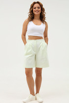 Женские шорты из футера на резинке с удобными карманами наизнанку. Пояс утягивается по ширине круглым шнуром. Низ обработан плоскими швами.