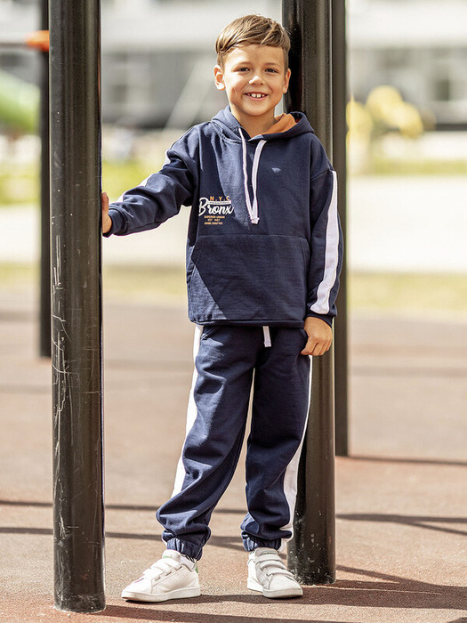 Худи для мальчика с капюшоном из футера темно-синее.