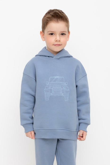 Толстовка с капюшоном для мальчика из футера трехнитки с начесом. Манжеты и пояс выполнены из эластичного полотна.