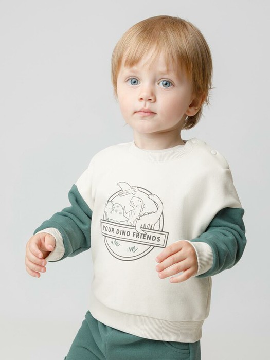 Свитшот для мальчика из высококачественного петельчатого футера. В составе 80% натурального хлопка и 20% полиэстера, при этом полиэстер ввязан внутрь по особой технологии и не соприкасается с кожей. Обтачка горловины, манжеты и пояс выполнены из эластичного полотна. Для удобства одевания имеется застёжка на кнопки. Оригинальный принт нанесён с помощью стойких текстильных гипоаллергенных красителей.