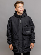 Зимняя куртка для мальчика с утеплителем SEE®: 250 г/м2. Выполнена из мембранной ткани с дополнительной тефлоновой обработкой, которая предохраняет изделие от загрязнений и отталкивает влагу. Подклад выполнен из 100% полиэстера Tricot. Куртка застёгивается на молнию и внешнюю планку с металлическими кнопками, предусмотрена защита подбородка. Съёмный капюшон на кнопках и липучках имеет эластичную утяжку со стопперами и отстёгивающуюся опушку из искусственного меха, регулируется по глубине. На рукавах внутренние эластичные манжеты, ширина рукава регулируется при помощи липучки. По бокам два накладных кармана и два кармана с молниями на груди. По талии эластичная утяжка со стопперами. Во всех изделиях верхнего ассортимента для безопасности ребёнка предусмотрены светоотражающие элементы.