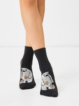 Новогодние трикотажные носки обычной длины с формованной пяткой. Украшены рисунком с Дедом Морозом. Эластичная резинка по верхнему краю.