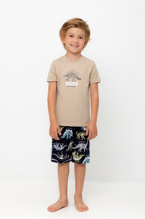 Акция по 23.12 Crockid пижама дет К 1528/темно-бежевый,цветные динозавры