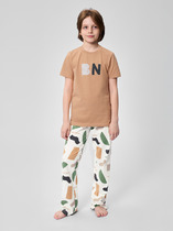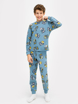 Трикотажная пижама из натурального хлопка. Футболка с короткими рукавами с принтом. У брюк эластичный пояс на резинке. Оригинальные принт и набивка выполнены из стойких, гипоаллергенных текстильных красителей. Пижама сохраняет цвет и форму после многократных стирок. Все трикотажные полотна производятся в соответсвии с нормами Швейцарского сертификата ЭкоТекс.