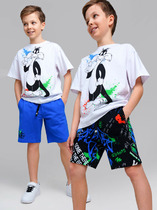 Трикотажные шорты для мальчика из высококачественного хлопка. Эластичный пояс регулируется при помощи шнурка. По бокам удобные карманы и два накладных кармана.