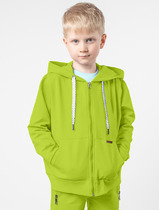 Бомбер для мальчика на молнии. Изготовлен из мягкого петельчатого трикотажа, произведённого из натурального хлопка. Воротник, манжеты и пояс выполнены из эластичного полотна. Спереди два кармана. Изделие сохраняет цвет и форму после многократных стирок. Все трикотажные полотна производятся в соответствии с нормами швейцарского сертификата ЭкоТекс.