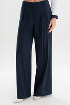 Брюки из костюмной ткани с добавлением шерсти в клетку прямого силуэта, слегка зауженные книзу с боковыми карманами и заутюженными стрелками. Комфортый пояс на резинке. Застегивается спереди на молнию и брючный крючок.