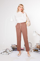 Свободные женские брюки с разрезами и боковыми карманами из плотного гладкого трикотажа интерлок. Низ обработан плоскими швами.