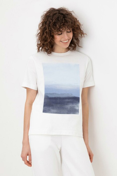 Женская футболка из длинноволокнистого гребенного хлопка с принтом.