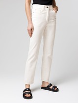 Состав: 98%Хлопок 2%ПУ Параметры модели на первом фото: Рост 172, бюст 88, талия 64, бедра 88Джинсы в теплом белом оттенке выполнены из эластичного денима. Модель прямого кроя с посадкой по фигуре. Эластан в составе гарантирует комфорт и предотвращает вытягивание. Модель найдет свое место в любом гардеробе на все случаи жизни. Изделие дополнено фирменным патчем.