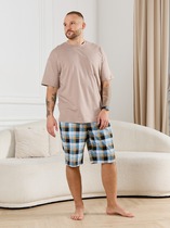 Шорты мужские из трикотажного полотна "кулирка" с набивным рисунком, удлиненные, на притачном поясе с эластичной тесьмой внутри, с карманами в боковых швах, входы в которые окантованы основным материалом.