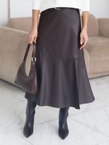 АКЦИЯ Юбка миди с разрезом из струящегося плотного сатина