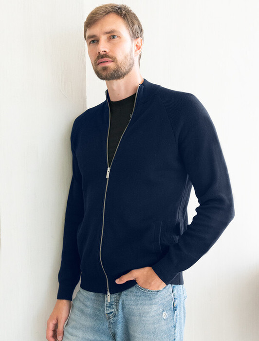 Совместные покупки Магнитогорск Мужская одежда Джемперы, свитеры — Акция Vilatte Джемпер тонкой вязки из хлопка на молни U39.002 темно-синий