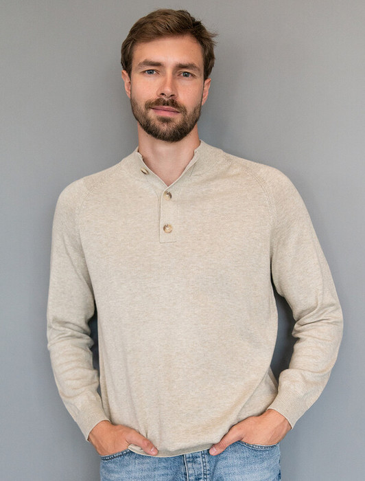 Совместные покупки Магнитогорск Мужская одежда Джемперы, свитеры — Акция Vilatte Джемпер тонкой вязки с застежкой на пуговицы U39.004 св.бежевый м