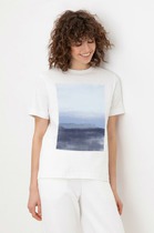 Акция Vilatte Футболка с принтом свободная эластичная из премиального хлопка D4