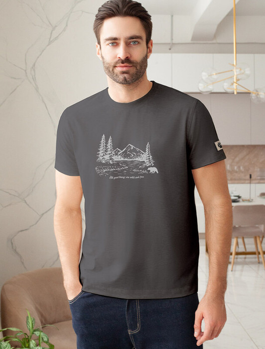 Совместные покупки Магнитогорск Мужская одежда Футболки — Акция Vilatte Футболка из премиального хлопка с авторским принтом U49.045 серый