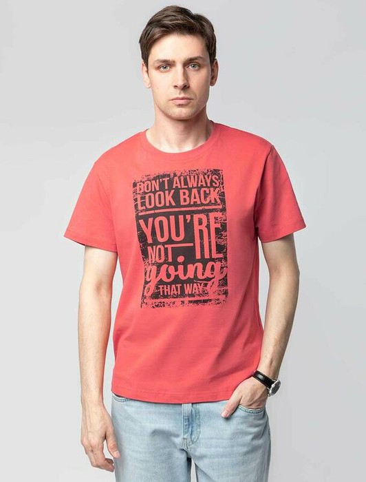Совместные покупки Магнитогорск Мужская одежда Футболки — Акция Vilatte Футболка из премиального хлопка с принтом U49.004 коралловый_dont