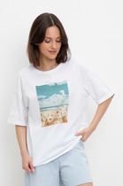 — Акция Vilatte Футболка с принтом свободная эластичная из премиального хлопка D4