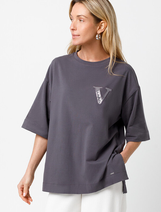 Акция Vilatte Футболка свободного кроя с авторским принтом D49.082 т.серый_vila