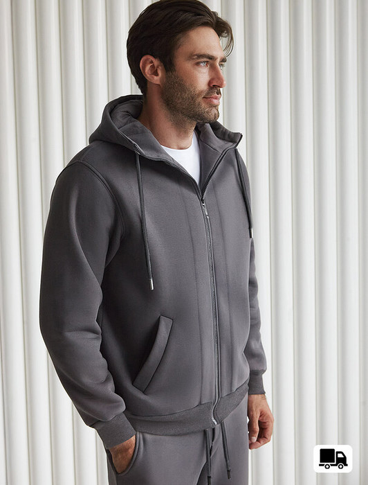 Совместные покупки Магнитогорск Мужская одежда Толстовки — Акция Vilatte Худи на молнии из премиального футера трехнитки с начесом U49.037