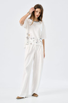 Брюки выполнены из плотной эластичной хлопковой ткани с нейлоном. Зауженная модель визуально вытягивает силуэт и стройнит ноги. Плотная и при этом эластичная ткань отлично держит форму в течении всего дня гарантируя абсолютный комфорт, не сковывая движений.
