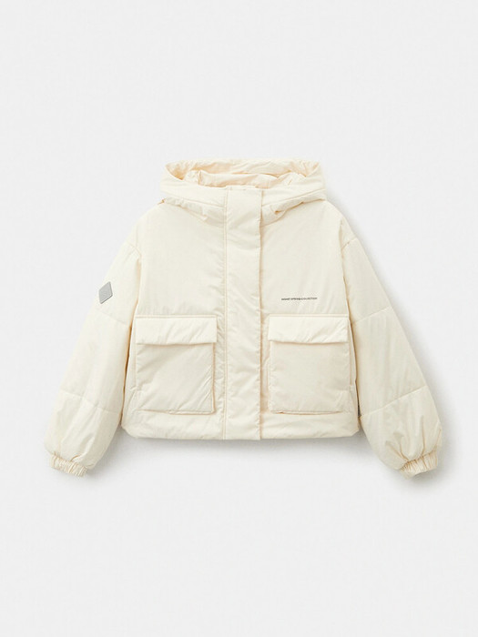 Объемная эргономичная куртка для девочек. Декоративная горизонтальная стежка. Два  больших накладных кармана с боковым входом и декоративными клапанами.  Внутренний карман. Манжеты рукавов обработаны эластичной тесьмой. Широкая ветрозащитная планка закрывает фронтальную молнию.  Ветрозащитная планка фиксируется потайными кнопками. Несъемный капюшон. На правом рукаве и на спинке светоотражающие нашивки.Характеристики:Ткань верха: Fitsystem style 1202 PU WRПодклад: п/э