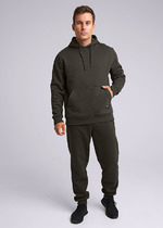 Мужское худи свободного силуэта из трикотажного футера с теплым подчесом. Круглая горловина с капюшоном, длинные рукава на манжетах, слегка спущенная линия плеча, пояс из рибаны – худи удачно сочетает комфортный дизайн и отличное качество!