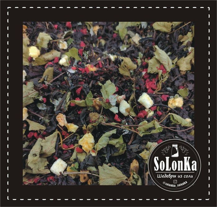 Ароматный черный чай " Арктическая малина ". Арктическая малина, поленика , мамура, полянина, полуденица и хохлушка. Раньше ягоды были настоящим деликатесом , деревенские девушки отправлялись на сбор плодов в лес, затем приносили их к барскому столу. Особенно любили княженику дети князей, от чего и произошло название растения. В некоторых областях России лукошко ягод ценилось на уровне с мехом соболя , вышитыми вручную тканями и украшениями ручной работы. Растет княженика в лесу, на лугах, на берегу рек и ручьев, на болотах, в тундре. Княженика считается лучшей ягодой севера и является официальной цветочной эмблемой шведской провинции Норрботтен. Ягоды по форме и величине похожи на малину, но цвет более сложный. Аромат спелой княженики напоминает ананас. На вкус плоды похожи на клубнику, малину и ежевику, только еще более вкусные и ароматные. Плоды княженики содержат дубильные и ароматические вещества, витамин С , глюкозу, фруктозу, яблочную, лимонную кислоту, антоцианы . В листьях много фитонцидов и аскорбиновой кислоты. Княженика — сильный растительный антиоксидант, который замедляет старение организма, очищает организм от вредных токсинов и радикалов. В этом ароматной купаже нет ягод самой княженики, но есть ее настоящий лист. А также много сублимированной малины и ананаса. Состав: черный байховый крупно-листовой чай, сушеный лист дикой малины, сушеный лист княженики, сушеные корни дикой малины, сублимированная малина, сублимированный ананас кусочками. Упаковка: Крафт пакет ''дой-пак'' 40гр.
