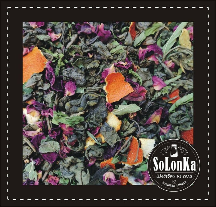 Ароматный зеленый чай " Снежная роза ". Прима этого купажа конечно роза . Ароматно-душистая красавица кутается в вуаль прохладных листьев мяты и мелиссы. Яркими пятнами играет цедра апельсина, но у нее здесь роль пажа, перед Королевой Цветов. Нотки благородного кардамона и сычуанского перца раскроются только в процессе заварки. И они как галантные кавалеры подхватят леди-розу за руки и закружат в чайном полонезе. Состав: зеленый байховый крупно-листовой чай, лепестки дамасской розы, сушеная мята, сушеная мелисса, цедра апельсина, кардамон, сычуанский перец. Упаковка : Крафт пакет ''дой-пак'' 40гр.